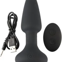 Beskrivning: Uppladdningsbar och fjärrstyrd analvibrator som i halsen har roterande massagepärlor under ett tunt lager silikon, för extrem stimulans även av analöppningen. Klassisk pluggform med avsmalnande hals som gör införandet enklare. Denna plugg är mediumstor till storleken, med en maximal diameter hos delen du för in på strax under 4 cm.