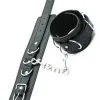 Beskrivning: Handklovar av metall med mjukt, svart polyesterplysch-överdrag. Detta är säkerhets-handklovar som kan öppnas med en nyckel men även för hand. Överdragen kan tas av.