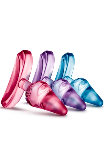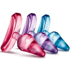 Formad för enkelt införande med en smalare hals som gör att den väl införd sitter på sin plats. Bred i basen för att enkelt kunna greppas och tas ur när det är färdiglekt. Tillverkad av mjuk och flexibel TPE som gör den böjlig och anpassningsbar efter just din insida. Produkten säljs i osorterade färger bestående av rosa, lila och blåa pluggar.