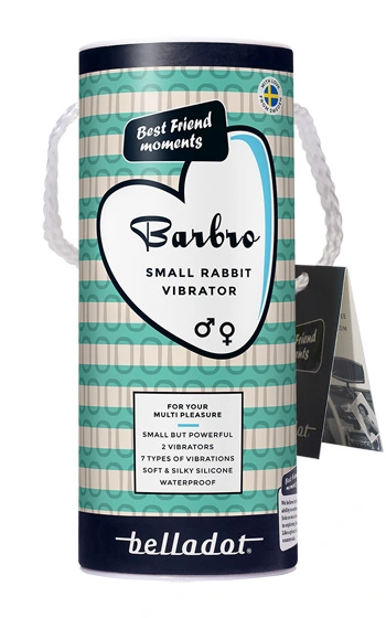 Beskrivning: Belladot Barbro är en lite mindre rabbistav för henne som erbjuder dig stimulans av både klitoris och G-punkten samtidigt. Här får du två kraftfulla motorer kombinerat med härligt silikon samt en lätt vinklad topp.
