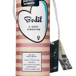 Beskrivning: Härligt mjuk, böjbar och följsam g-punktsvibrator i läcker pastellfärg. Den kraftfulla vibratorn som sitter i toppen är mycket stark och ger en underbar upplevelse. Du styr enkelt hastigheten i vibratorn via det kreppvänliga kontrollen. Praktisk förvaringspåse medföljer. Produkten levereras i en myclet läcker cylinderformad förpackning och lämpar sig utmärkt som present.