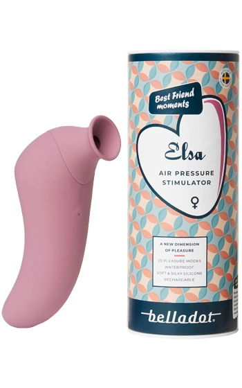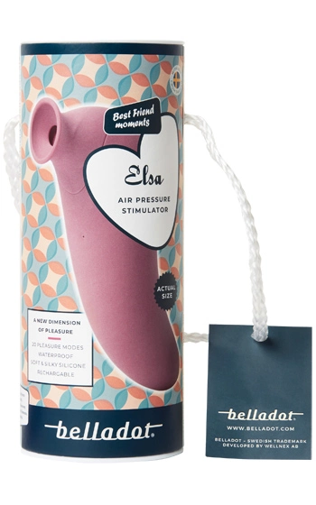 Beskrivning: Belladot Elsa är en kombinerad klitorisstimulator som med hjälp av både vibration och pulserande lufttryck tar din njutning till nya dimensioner. Den innovativa tekniken ger dig nästintill oändligt med valmöjligheter och intensiv stimulans. Experimentera tillsammans med Elsa och fascineras över hur enkelt hon blir din nya bästa vän.