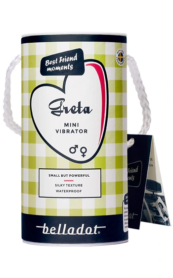 Beskrivning: Belladot Greta är en behändig minivibrator med både len och matt yta. Trots sin lilla storlek är den ändå superstark medan den ribbade ytan förhöjer njutningen vid varje rörelse.