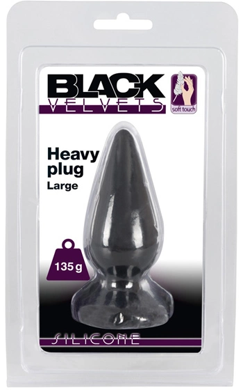 Ytan hos Heavy Plug är sammetslen och fantastiskt skön, den klassiska kon-formen gör införandet busenkelt. Detta är den största i serien av tre analpluggar med extra vikt. Pluggen har en ingjuten metallkula som ger den dess extra tyngd, kulan rör sig inte vid användande utan gör bara att pluggen är tyngre. Modellen har en helt platt underdel under den smala halsen, som fungerar stoppande när du har den i dig.