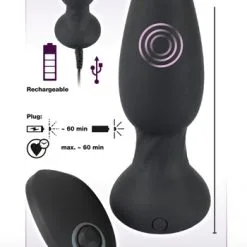 Beskrivning: Äntligen slipper du sträcka dig fram/bak och trycka direkt på pluggen för att växla vibrationsläge. Starta igång analpluggen genom att hålla knappen intryckt tills den lyser, använd sedan den trådlösa fjärrkontrollen för att växla mellan dess sju olika vibrationsprogram. Med denna produkt kan du välja allt från försiktiga till superstarka vibrationer, och växla mellan dem med ett knapptryck. Denna plugg är av något större storlek, och passar bäst för dig som tidigare har lekt med anala sexleksaker. Använd den på egen hand eller experimentera tillsammans med din partner.