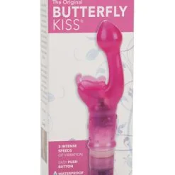 Beskrivning: Butterfly Kiss som i ett av Aftonbladets stora leksakstest kammade hem 4 plus är en kombinerad klitoris och G-punktsvibrator. Den kraftfulla vibratorn styrs enkelt via knappen i botten och det finns 3 olika vibrationslägen att välja på. Mycket mjuk i materialet och ergonomisk utformning gör denna fjäril till en klar vinnare. En produkt som passar utmärkt både till nybörjaren och den mer vana användaren av sexleksaker.