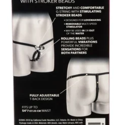 Beskrivning: Trosa gjord av justerbara resårband för en bra passform på alla storlekar. Små lustkulor som stimulerar på båda sidor om klitoris samt blygdläpparna och samtidigt ger honom en otroligt skön massage under samlaget. Ovanför kulorna sitter en liten vibrator som ger båda parter härliga vibrationer. Du kan även använda den lilla vibratorn separat utan trosan.