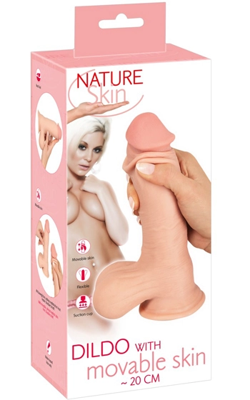 Huden är lös och rörlig till viss del, men kan inte dras över hela ollonet, utan är flexibel för att efterlikna känslan hos en riktig (omskuren) penis. Varje liten detalj hos dildon har arbetats till perfektion, såväl ollon som hudveck, ådring och allt annat känns precis som en riktig penis.