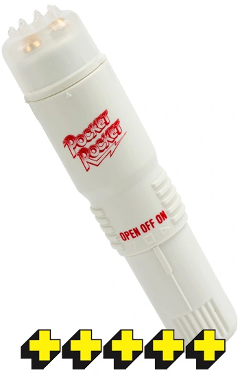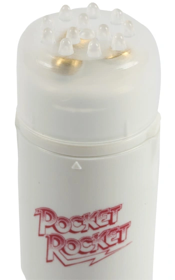 Beskrivning: Pocket Rocket – Originalet, från Doc Johnson är en av de absolut kraftfullaste minivibratorerna i världen! Produkten kan stoltsera som en prisvinnare av fem plus i ett av Aftonbladets stora test av sexleksaker. Pocket Rocket är utformad för att stimulera kvinnans klitoris men fungerar även utmärkt på andra sensuella delar av din eller din partners kroppen. Välj mellan njutning med eller utan den extra ”prickiga” hatten, på produktens topp finner du tre metallkulor som med en explosionsartad kraft vibrerar dig raka vägen till sjunde himlen. Pocket Rocket The Original drivs av endast ett batteri som räcker till över en timmas lek. Lite dyrare än sina liknande eftersläntrare men med en kraft som aldrig kunnat återskapas. Vid nedsatt känsel eller svårigheter att uppnå orgasm är detta produkten nummer ett!