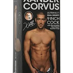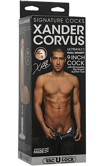 Beskrivning: Nu har du chansen att känna världskända porrstjärnan Xander Corvus stake i dig! Denna dildo är avgjuten direkt från stjärnan, och tillverkad i materialkombon Dual Density. Dual Density innebär att det är flera lager silikon, med en hård kärna i mitten som gör att det känns väldigt likt den äkta varan, styv men precis lika mjuk i huden som en riktig penis.