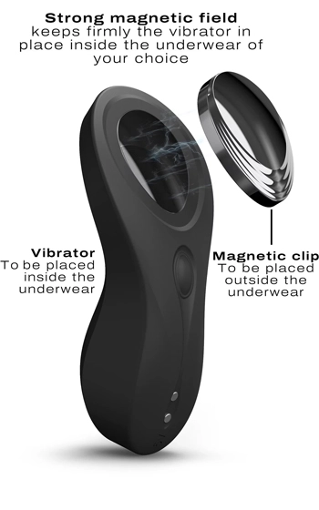 Beskrivning: Vibrator med smart magnet-låsning som kan användas i vilken trosa som helst, från franska kvalitetsmärket Marc Dorcel. Vibratorn har en ergonomisk design med precis samma ergonomi som utsidan på din vagina. Discreet Vibe placeras i din trosa, och den lilla magneten på utsidan av trosan för att ”låsa fast” den i rätt läge. Kan användas i alla typer av trosor, och stimulerar klitoris samt vaginaöppningen med sköna vibrationer.