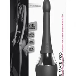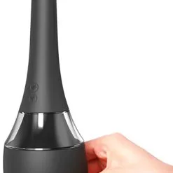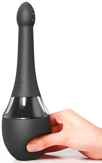 Beskrivning: Elektrisk analdusch som gör nästan allt jobbet år dig! Fyll koppen med 200 ml ljummet vatten, för in toppen och håll den nedersta knappen intryckt för att starta spolfunktionen (tre olika spolfunktioner finns). Den övre knappen hålls intryckt för att starta produktens vibrationer i toppen, här erbjuds sju olika vibrationslägen.