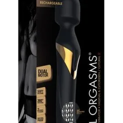 En annorlunda, häftig och kvalitativ produkt av silikon som andas ren lyx tack vare detaljerna i guld. Dual Orgasms innehåller två olika motorer, dels den starka motorn i huvudet, men också den kraftfulla motorn nedtill som låter metallkulorna rotera samtidigt som du har den i dig. Produkten är vattentålig och får följa med in i duschen, den bör dock inte dränkas helt under vatten. Uppladdningsbar via medföljande USB-kabel. Förvaringspåse av tyg ingår även till produkten.