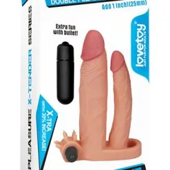 Beskrivning: Penisöverdrag av kvalitativt material som ger din penis extra storlek, samtidigt som du även ger din partner en skön dubbelmacka tack vare den mindre dildon undertill. Hela produkten är gjord av det hudlika materialet TPE, samt har detaljer som ådring och ollon som ökar det realistiska intrycket.