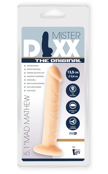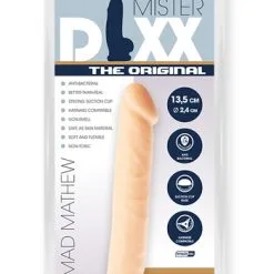 Beskrivning: Klassisk dildo av mjukt gummi som påminner om silikon i känslan. Mathew kommer från serien Mr Dixx, och är en flexibel modell som är extra smal. Perfekt för nybörjaren eller vid anal penetration då omkretsen bara är 6,5 cm.