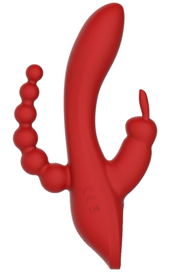 Tillverkad av sammetslen silikon, i kärlekens färg och med uppladdningsbart batteri som ger hög driftsäkerhet och lång batteritid. Både dildon, analkulorna samt rabbiten är flexibla. En multifunktionell rabbitstav för dig som vill prova på njutning i och på alla områden samtidigt!