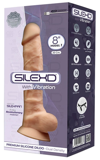 Beskrivning: Äntligen! Våra absoluta bästsäljare när det kommer till dildos har nu äntligen kommit med inbyggd vibrator. För dig som söker efter en realistisk dildo med samtidiga vibrator är detta det absolut bästa och mest verklighetstrogna alternativet. Du slipper helt och håller sladd och fjärrkontroll, produkten laddas upp och styrs direkt vid roten av penisen.
