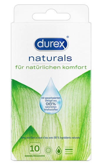 Beskrivning: Naturlig kondom med Durex smarta ”Easy-On” design som gör den lätt att rulla på samt ger bästa passform. Tjocklek på bara 0,055 mm vilket gör att du knappt känner att du använder kondom. Behandlad med Durex Naturals populära glidmedel som även det är naturligt utan artificiell färg eller doftämnen. Kondomen har behållare i toppen och ger maximal komfort under sex. Designad för en skön upplevelse oavsett om den används för vaginalt, oralt eller analt samlag. Kondomen är i standardstorlek och passar bäst på dig som har en penis-omkrets över 12 cm.