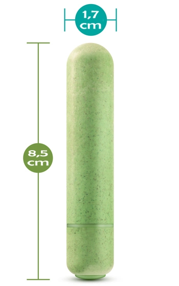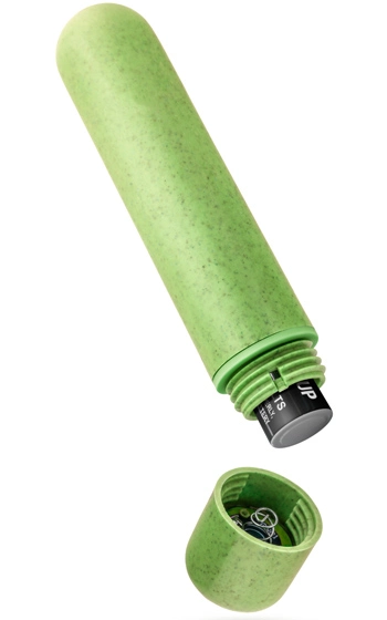 Slät yta med en rundad topp som känns skön mot huden, helt utan skavande skarvar. Vibratorn drivs av ett vanligt LR3/AAA batteri, och levererar otroligt mycket kraft för sin lilla storlek. Produkten har ett vibrationsläge samt en nedsänkt knapp för att förhindra att den startar av misstag. Bioplasten är återvinningsbar och kommer att brytas ned inom 47-90 dagar i en komposteringsanläggning. Ta möjligheten att kombinera nytta med njutning, Eco Bullet hjälper dig att minimera påverkan på miljön, samtidigt som du fortfarande kan njuta till fullo med gott samvete.