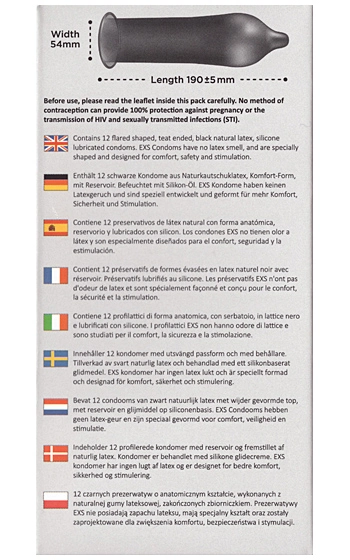 Beskrivning: Black Latex är en svart kondom med markerat utsvängd topp. Den är tillverkad i naturlatex och 100% luktfri. Den är också rikligt behandlad med silikonbaserat glidmedel för maximalt glid. Som du ser på extrabilden är den något smalare i botten och större uppe i toppen. Tjocklek 0,07 mm. Black Latex passar dig som har en omkrets på minst 12 cm.