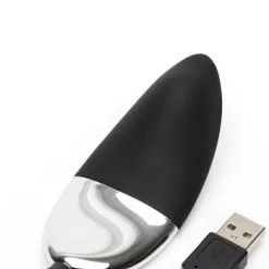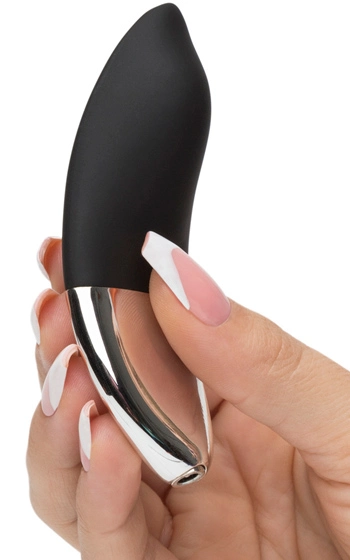 Med sin lätta böj har den en perfekt vinkel för att följa din snippas form. Halva vibratorn är lyxigt kromad av silver, medan den svarta delen har en sammetslen och underbart skön yta. Utforska dess 10 olika vibrationslägen i 6 olika intensiteter. Produkten kan även användas under vattnet. Uppladdningsbar via medföljande USB-kabel. Förvaringspåse ingår i förpackningen.