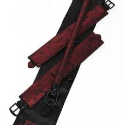 Bojorna har en läcker utsida av svart och rött med blommigt mönster, samt insida som är vadderad för bekvämt bärande utan skav mot huden. 5 cm breda fängsel som har låsning likt ett klassiskt bälte, med hål för justering av storlek. Förvaringspåse av tyg med tryck av Fifty Shades ingår för diskret förvaring när den inte används.