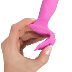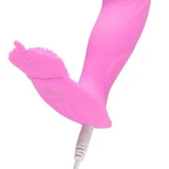 Tio olika vibrationsprogram, uppladdningsbar samt med flexibel hals. Plattan för klitoris är täckt av små stimulerande noppar för skön stimulans med varje rörelse. Plattan över klitoris är bara 1,5 cm hög och kan därför bäras diskret innanför trosan utan att någon utomstående ser vad som försiggår. Snyggt knallrosa modell som laddas upp via medföljande kabel.