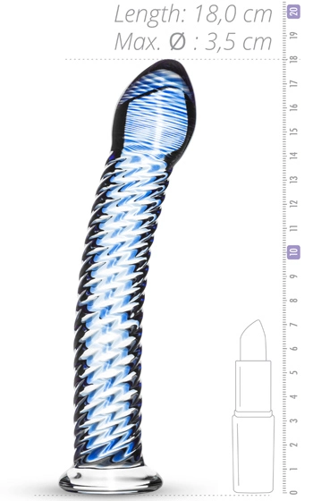 Beskrivning: Sensuell dildo som omedelbart fångar din uppmärksamhet och startar igång ”vill-ha” känslan i kroppen. Glasdildos känns kyliga i materialet och ser väldigt lyxiga ut. Alla dildos ur denna serie är handblåsta och därför kan storleken skilja sig några millimeter från måtten nedan.