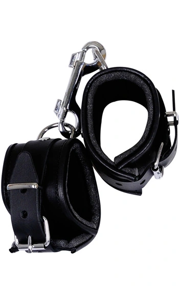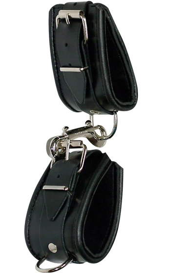 Beskrivning: Kraftiga handfängsel i läder. Kätting med tre öglor som sitter fast rejält för lekar ensamma eller kopplade runt valfri stolpe. De bästa och mest tåliga materialen metall och läder kombinerade i en högkvalitativ modell som tack vare flera hål passar alla storlekar på händer. Hög kvalitet för tuffa lekar.