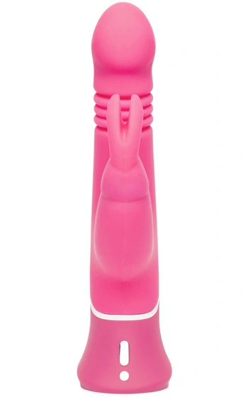 Beskrivning: Silikonkanin som verkligen erbjuder dig något utöver det vanliga. Happy Rabbit har förutom två vanliga vibrationer även en superstark motor som rör toppen fram och tillbaka inuti dig, för att simulera känslan av riktigt sex. Känn och upplev en kanin som snabbt berövar dig kontrollen över din kropp och får dig att nästan extatiskt njuta till fullo. Samtidigt som toppen rör sig upp och ned i dig så vibrerar även själva staven, samt även den ettriga kaninen som ligger mot klitoris. Toppen av Happy Rabbit är rundad för en ”smooth” känsla och enkel penetration.