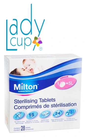 Beskrivning: Steriliserande tabletter som steriliserar din menskopp på bara 15 minuter. Hjälper snabbt och effektivt till att hålla din menskopp ren, fräsch och bakteriefri. Milton desinfektionstabletter har använts på sjukhus i över 30 år, dess antibakteriella effektivitet funkar mot alla typer av bakterier och är kliniskt bevisad. Milton steriliseringstabletter är mer effektiva på att göra rent än vanlig kokning och dödar bakterier än mer effektivt. Paketet innehåller 28 tabletter. Kombineras med vanligt vatten.
