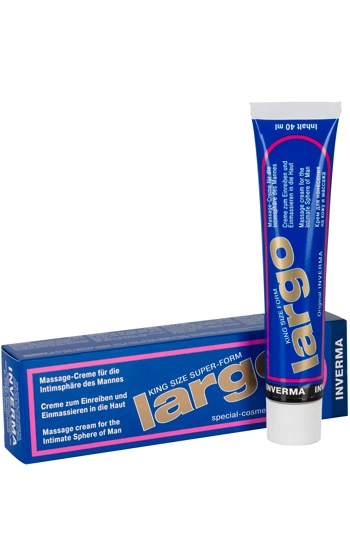 Beskrivning: Kräm för honom som säkerställer en hårdare och starkare erektion nästan direkt efter applicering. Largo King Size kan utan problem användas dagligen. Massera in krämen på penis och förvånas över den omedelbart värmande och vitaliserande effekten. Largo stimulerar samtidigt också blodcirkulationen, för en maximerad storlek och hårdhet. Storleksökningen kommer huvudsakligen via tillsatsen av capsaicin (ett chili-extrakt).