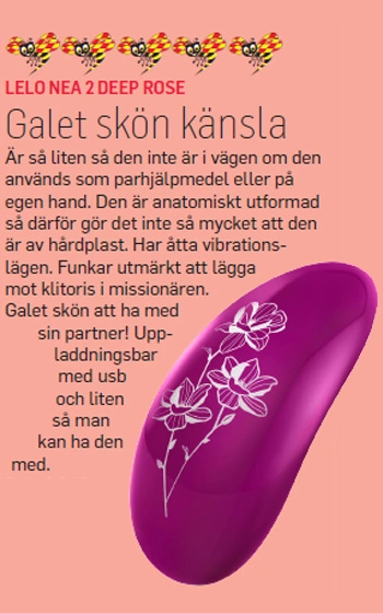Beskrivning: NEA är en liten och ergonomisk klitorisstimulator vars porslinsliknande yta, dekorerad med blommor i Belle Epoque-stil, döljer en kraftfull men tystgående och diskret vibrator. Produkten är helt vattentät ner till 1 meters djup. Upplev åtta olika, intensiva vibrationsprogram som får dig att njuta av en klitorisvibrator likt ingenting annat du provat. Nea uppladdningsbar och levereras i presentförpackning med laddare och manual.