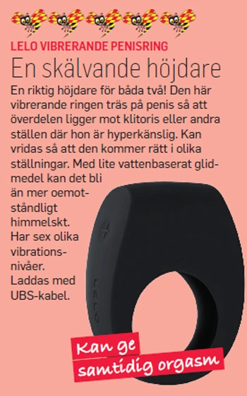 Beskrivning: Förläng och försköna dina och din partners sexsessioner med en lyxig penisring från svenska Lelo. Tor 2 är uppladdningsbar och fungerar inte bara genom att stimulera din partners klitoris vid varje penetration, den ger även dig som man ökad erektion samt bättre uthållighet. Detta är uppföljaren till tidigare modellen som hette enbart ”Tor”, nyheten har 100% mer kraft än den tidigare. Lek, pröva och hitta din favorit bland dess 6 kraftfulla och individuellt justerbara vibrationer. Med denna minst sagt lyxiga ring får både du och din partner otroligt mycket mer nöje än vid vanligt sex.