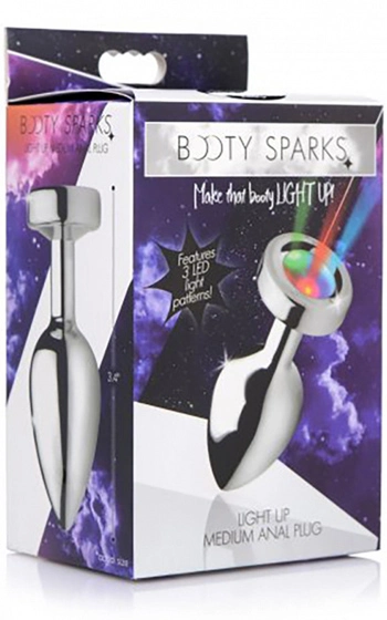 Beskrivning: Klassiskt formad analplugg av metall som med tre lampor i botten som lyser/blinkar i tre olika program. En uppsättning batterier samt en vibrerande penisring av enklare modell ingår i förpackningen. Ge bort den till någon du tycker om eller lys upp det mörka rummet på egen hand. Denna typ av analplugg har efterfrågats av många utav våra kunder. Pluggen är i storlek medium, större än de minsta men ändå inte jättestor.
