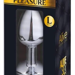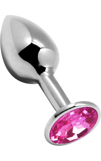 Beskrivning: Analplugg i helgjuten metall med en läckert skimrande sten i botten. Avsmalnande i toppen för lättare penetration, och med en smalare hals för att väl införd sitta på sin plats.