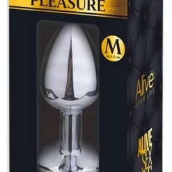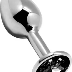 Beskrivning: Analplugg i helgjuten metall med en läckert skimrande sten i botten. Avsmalnande i toppen för lättare penetration, och med en smalare hals för att väl införd sitta på sin plats.