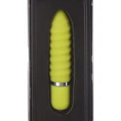 Beskrivning: Färgglad och nästan lysande limegrön lite mindre massagestav med en kraftigt ribbad yta. Handy Climax Ribbed är tillverkad av silikon vilket gör att den känns mjuk, behaglig och glider otroligt bra. Staven har 10 kraftfulla vibrationslägen och en smart led-lampa i knappen vilket underlättar vid lekar i mörker.