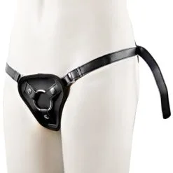 Beskrivning: Skön sele av syntetiskt läder där det följer med två metallringar, för att kunna kombinera den med din egen favoritdildo. Ringarna som medföljer har innerdiametrar på 40 mm och 54 mm. Ringarna fästes kring din dildo, och knäpps sedan fast framtill med tre knappspännen.