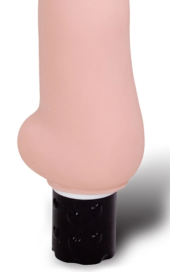 Beskrivning: Kraftfull, slät dildo med inbyggd vibrator som har det där lilla extra. Orgasmic Enforcer är gjord av det realistiska materialet Loveclone Rx, och känns precis som riktig hud. Naturtrogen modell i en medelstor storlek som penetrerar dig med 13 cm. Lättskött kontroll med två knappar, en för på/av och en för att växla mellan dess 10 olika vibrationsprogram. För dig som söker en lagom stor modell som är både tyst och kraftfull i vibrationerna till ett inte allt för högt pris. Till denna modell får enbart vattenbaserat glidmedel användas. För att återfå ”nykänslan” efter tvätt rekommenderar vi dig att pudra produkten med Renewing Powder.