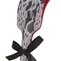 Beskrivning: Visa upp din dominanta sida och ge din olydiga partner lite smisk. Snygg piska med bra snärt som garanterat ger din partner en röd skinka. Piskan har ett blommönster av vit tråd, över lappen som är gjord av konstläder. En idealisk, inte allt för stor eller lång piska som passa lika bra för nybörjarparet som de mer erfarna.