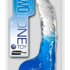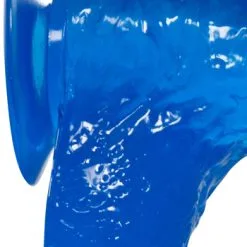 Beskrivning: Drömmer du liksom många andra om att köpa en riktigt snygg dildo som samtidigt är lite större till storleken? Kombinera en ultrarealistiska känsla med en härligt färgglad upplevelse. Dildon är naturligt lätt böjd nedåt, har en stark sugkopp i botten samt en verklighetstrogen pung. Som du ser på bilderna är dess yta mycket detaljerad vilket ger den dess levande känsla och utseende. Dildon är gjord av solid gummi som till hälften är transparent och hälften blå. Materialet i kombination med den noggranna gjutningen får denna dong att efterlikna den äkta varan i såväl hårdhet som böjlighet och utseende. Dildons penetrerande längd är 15 cm.