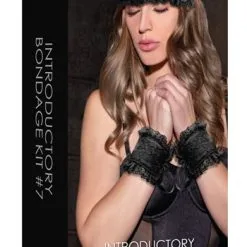 Beskrivning: Ett bondagekit för dig som vill frångå de traditionella handbojorna av metall, och istället prova på något mer elegant. Ett bra val som första kit, där handfängslen passar kring alla handleder, kvinnors som mäns. Praktiska silkesband som låter dig knyta bojorna var för sig eller i varandra. Mjukt vadderade insidor som gör dem bekväma att ha på sig, kombinerat med snyggt mönstrat spetstyg på utsidan.