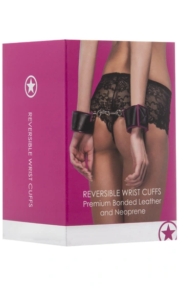 Beskrivning: Dubbelsidiga handbojor som låter dig välja svart eller rosa efter humör! Ena sidan är mjuk medan den andra känns lite hårdare mot huden. Fängslen är kopplade samman av en metallkedja som är fäst av karbinhakar för att tåla både ryck och slit. Extra tjockt material med välsydda kanter som erbjuder både nybörjare och proffs möjligheten till tuffa bondagelekar. Välj sida, justera storleken till perfektion och börja leka!
