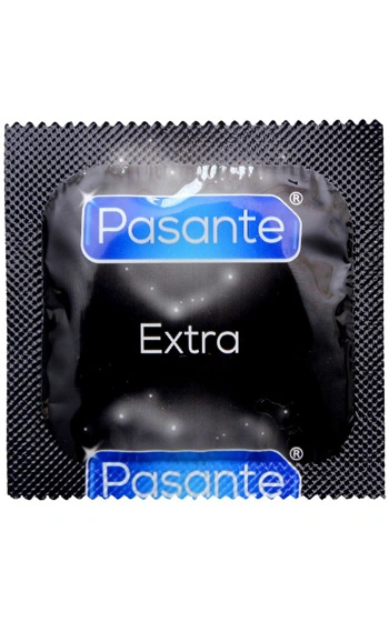 Beskrivning: Pasante Extra är kondomen för dig som verkligen vara på den säkra sidan. Med en tjocklek på 0,1mm lämpar den sig utmärkt vid sex med mycket friktion, ex. vid analsex. Den är också extra glidmedelsbehandlad. Längd 190 mm, Bredd 52 mm, Tjocklek 0,10 mm.