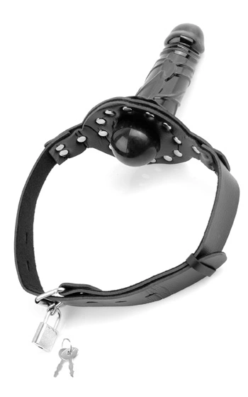 Beskrivning: Kombinerad gagball och strap-on dildo för paret som gillar lite mer kinky och extrema lekar. Rem och sele är gjort av konstläder och har justerbar storlek för att passa kring både henne och honom. Baktill på spännet finns möjligheten att låsa fast produkten kring din partners huvud. Dildo och gagball är gjorda i solid gummi. Ge ordet facefuck en helt ny innebörd med denna spännande prodoukt från Pipedream Fetish Fantasy. Dildon har en penetrerande längd av 13 cm. I förpackningen ingår även en ögonmask utan extra kostnad.