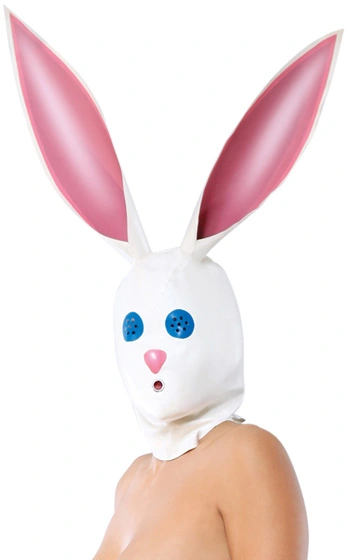Beskrivning: Låt inte det söta kaninansiktet lura dig. Denna extrema mask är mystisk, lockande, och definitivt kinky! Passar perfekt för extra kinky fetish-lekar eller om du vill överraska din partner och ta vardags-sexet till en ny dimension. Hög kvalitet och snörning bak samt öppen mun för enkel andning. Ögonen har flera små hål att se igenom, vilket gör sikten svår men inte omöjligt. Den handgjorda latexmasken känns bekväm mot huden och öronen är förstärkta för att kunna stå upp. Justera snörena i nacken tills masken är tät, knyt dem sedan och låt leken börja… En storlek – passar alla.