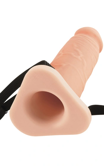 Beskrivning: Ett mellanting mellan en strap-on och ett penisöverdrag. Produkten är ihålig och har en styv cylinder, vilket gör att den kan användas av både tjejer och killar, samt även av killar som har erektionsproblem. Cylindern är 16 cm djup, och passar alltså bäst på dig som man om du har max 16 cm lång penis. Öppningen är 4 cm i diameter, medan den yttre diametern är hela 6 cm i diameter. Selen till produkten passar midjemått upp till 127 cm.
