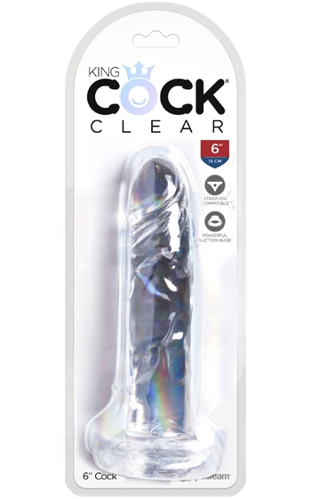 Beskrivning: Spännande, helt ny serie från det amerikanska märket King Cock. I denna nya serie får du samma sköna känsla som av en riktig penis, med ett kristallklart och transparent material. Skäm bort dig själv och upplev en känsla snarlik riktigt sex. Saknar du en partner, eller har honom inte alltid närvarande är detta det perfekta valet för att få lite sensualitet på egen hand. Realistisk ådring och ett lyxigt utseende, att den dessutom passar perfekt att hålla i handen gör knappast saken sämre. Prova en spännande twist och fäst din nya dildo på väggen eller golvet med den starka sugkoppen. Hög flexibilitet och böjbarhet som gör att den anpassar sig och följer efter just din insida.