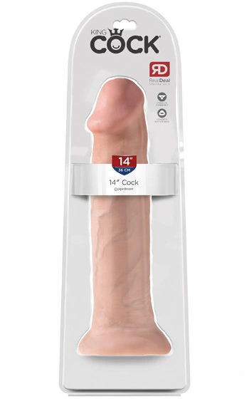 Beskrivning: En av de större modellerna ur den otroligt populära serien King Cock, här i rak modell utan pung. Denna dildo mäter hela 36 cm och penetrerar dig 32 cm. Som du ser på visningsbilden är modellen även enormt tjock, inte ens en vanlig colaburk kan klå den i tjocklek! Detta är en produkt för dig som söker perfektion, i kombination med extrem storlek. Varje detalj av dildon har handarbetats, och den är tillverkad i USA av världskända tillverkaren Pipedream.